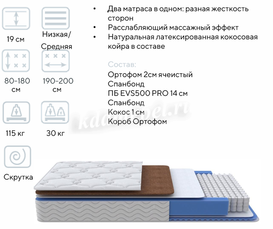 Матрас Global Imax new - два матраса в одном, разная жесткость сторон, расслабляющий массажный эффект, натуральная латексированная кокосовая койра в составе.