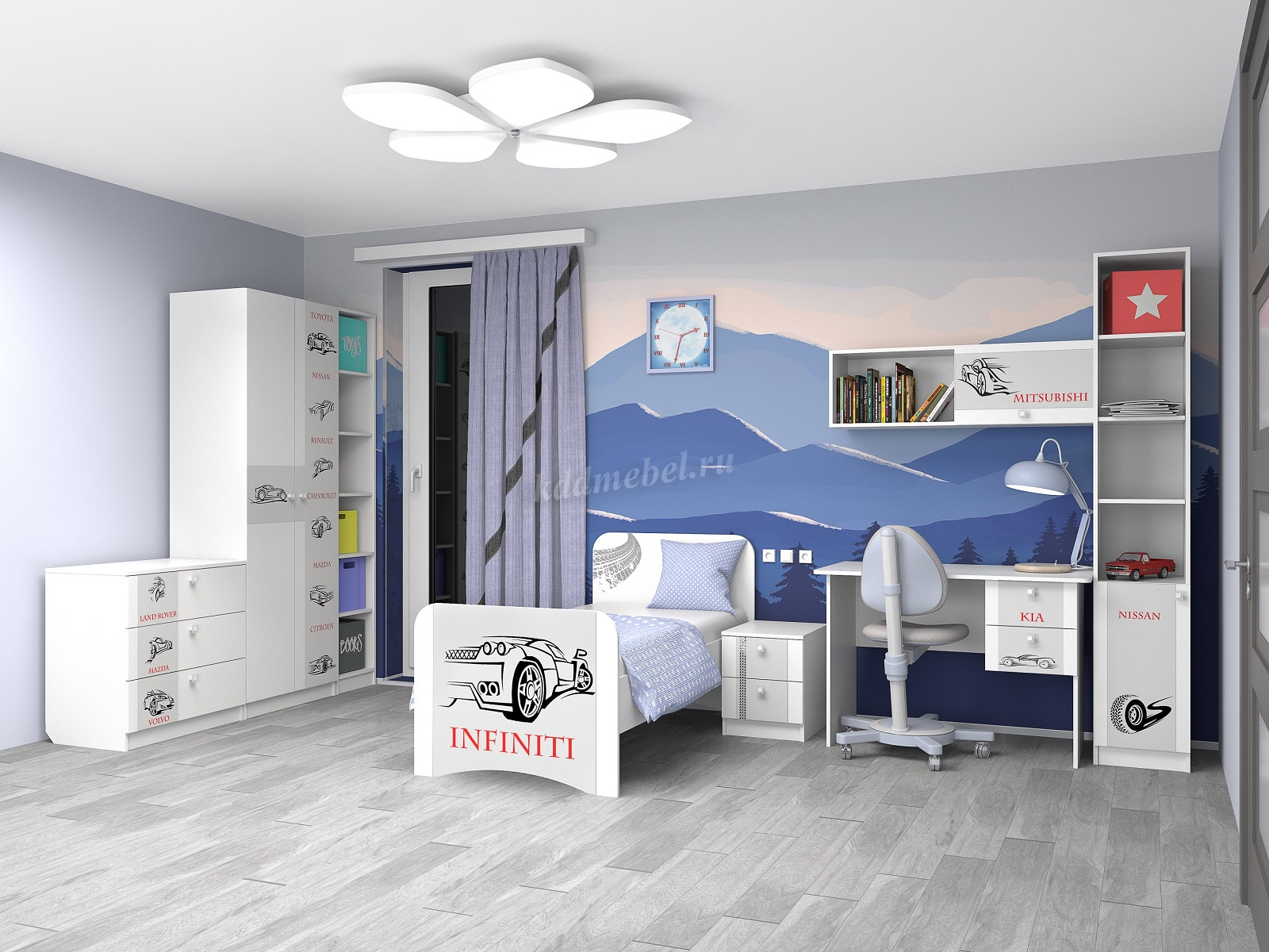 Кровать Смарти-2 (Белый/Фотопечать Машинки)