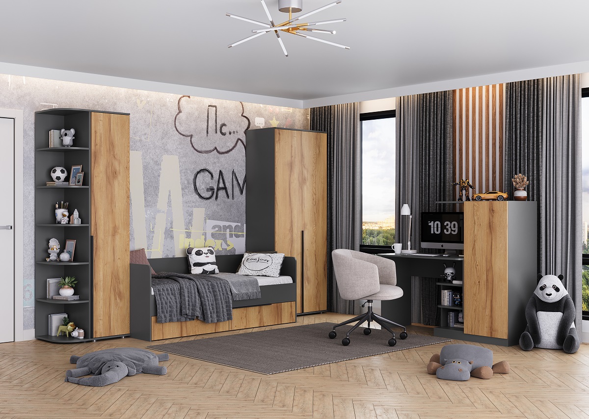 Представляем Вашему вниманию новую модульную систему для детской «СТИЛ». Новинка продолжает и дополняет собой линейку мебели для спальни и прихожей с одноименным названием, что даёт возможность использовать элементы одной коллекции, объединяя интерьерные решения квартиры или дома в единый стиль.