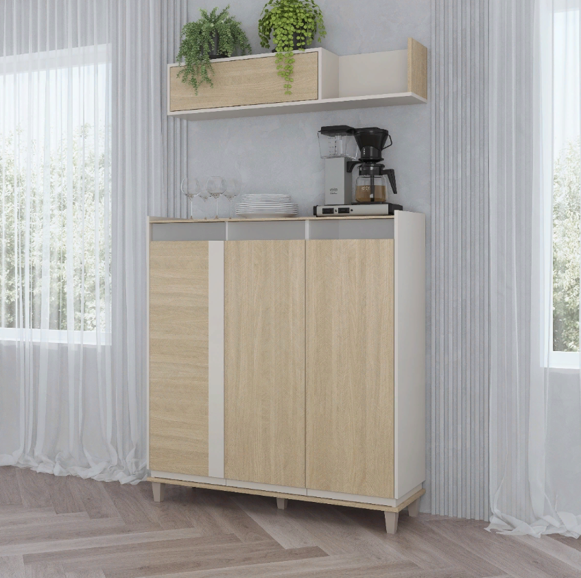 Мебель изготавливается из материалов с тиснением натурального дерева, которое гармонично сочетается с легкими перламутровыми оттенками корпуса.