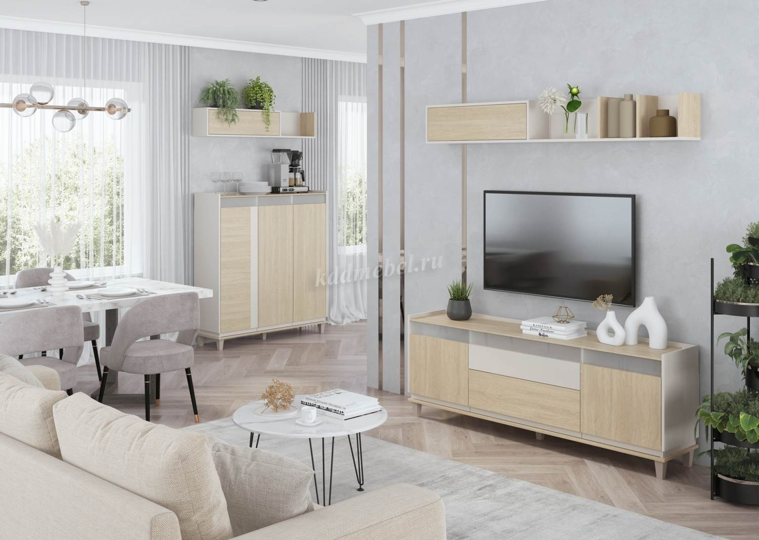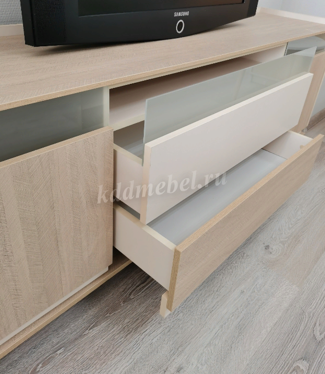комплектация гостиной с вместительной тумбой для телевизоров с диагональною до 75 дюймов.