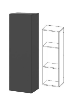 Пенал навесной. Крепится к стене на врезные навесы скрытого крепления. Дверка открывается с помощью толкателя.