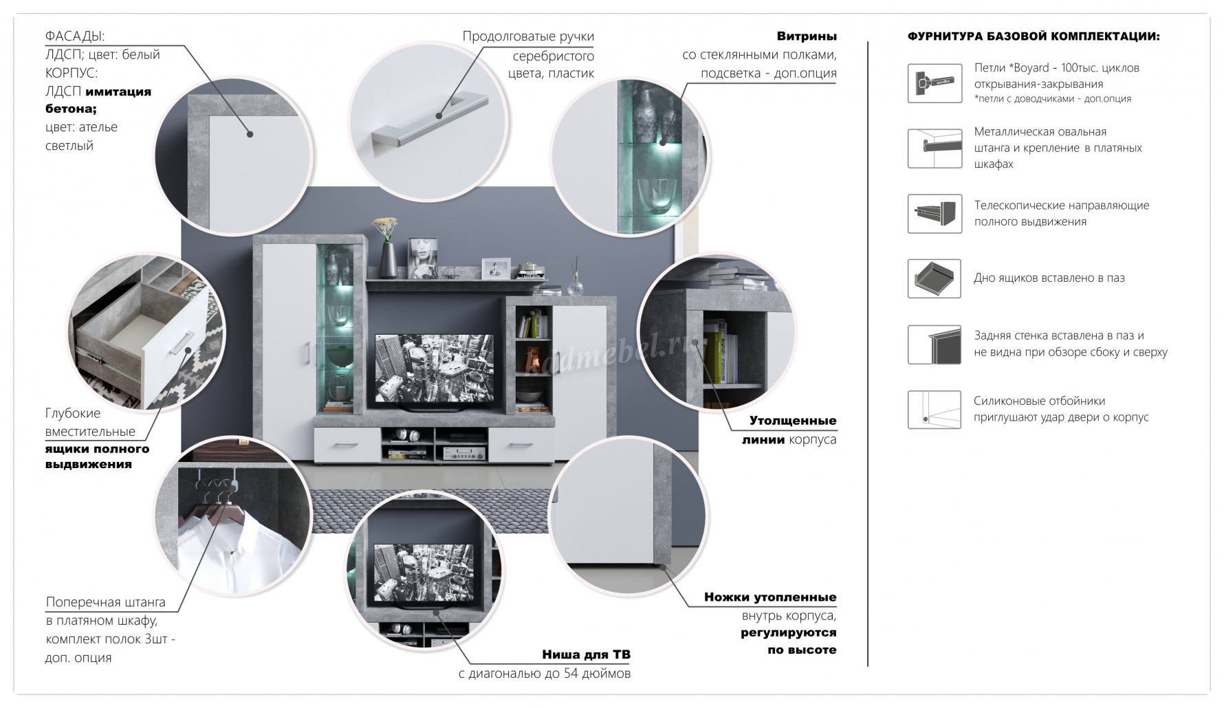 • Гостиная Невада (Крафт белый/Софт Вайт)
