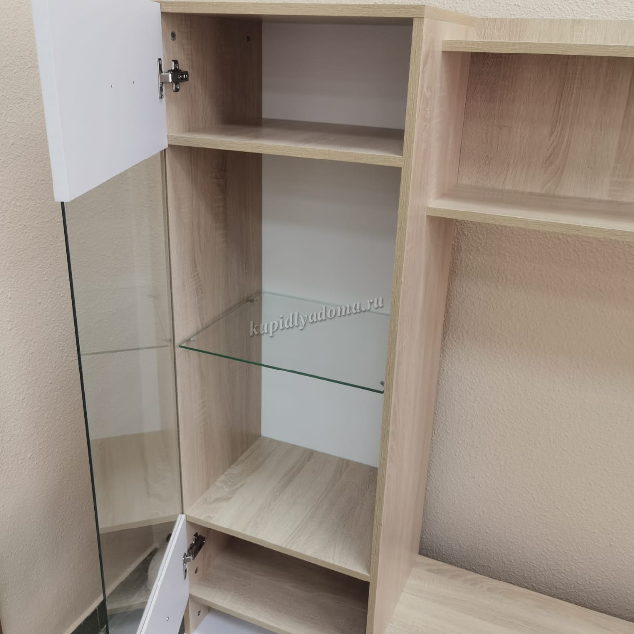 Покупатель может дополнительно заказать комплект светодиодной подсветки для стеклополок для модуля и пенала-витрины «Элиза».