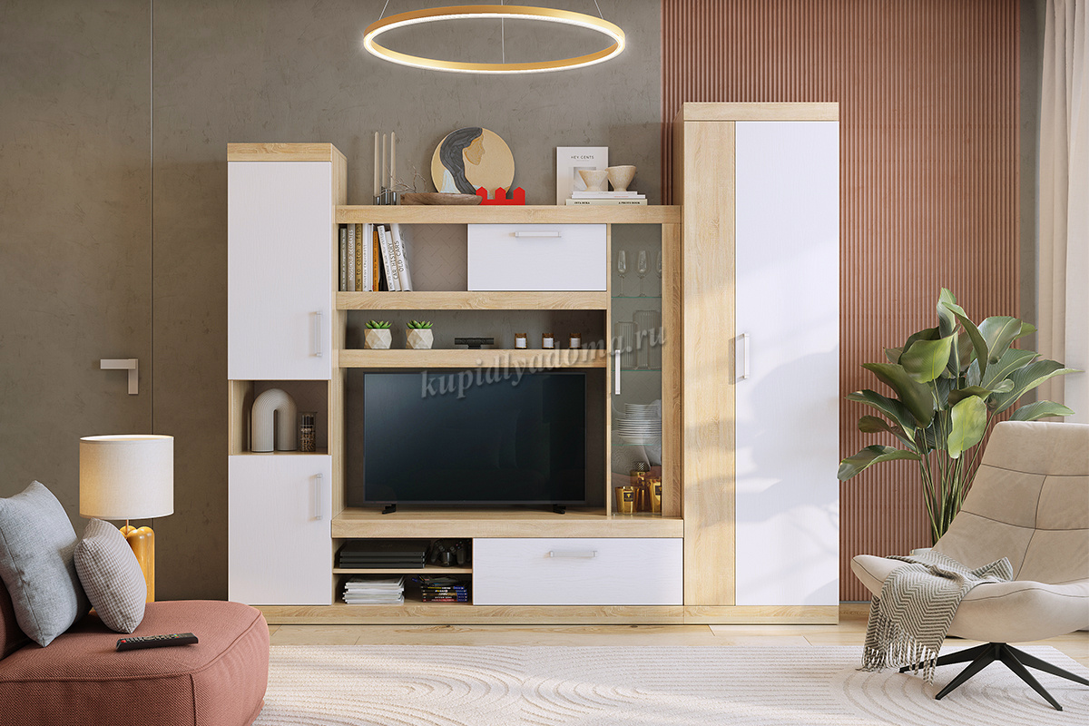 Описание Гостиная Макси (Дуб сонома/Белое дерево)