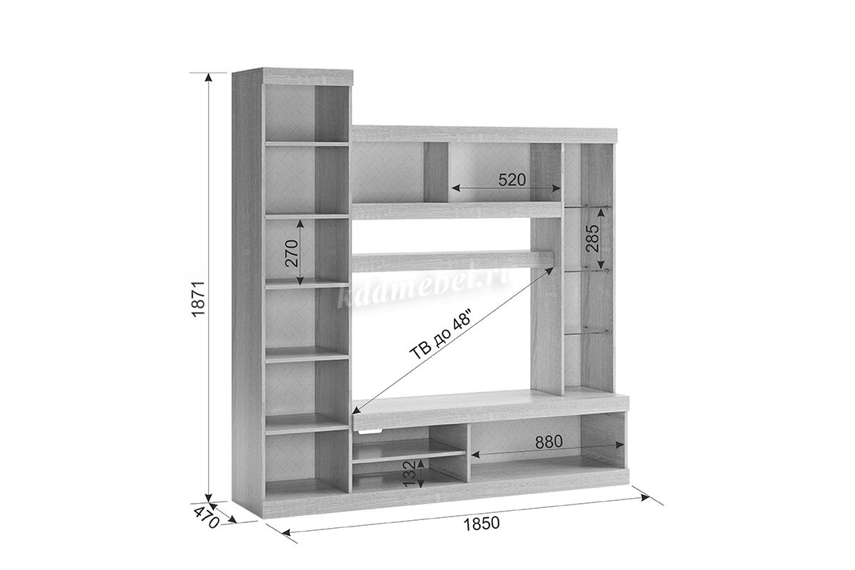 Мини-гостиная: 1850х470х1871 мм.