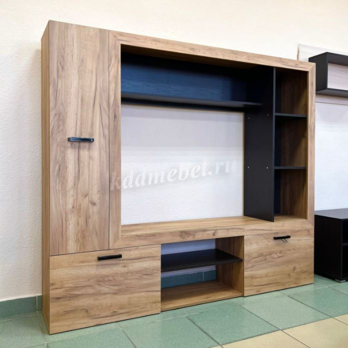 Компактная гостиная для небольших помещений или для тех, кто не хочет заставлять комнату большими конструкциями. В Гостиной «Oskar-3» предусмотрены открытые и закрытые полки для хранения мелочей, бумаг, книг. Место для телевизора и аппаратуры. Закрытые отделения для хранения белья, а так же полка для сувениров и фотографий. Отличительной особенностью гостиной является багетная рамка, которая придает гостиной современный вид.