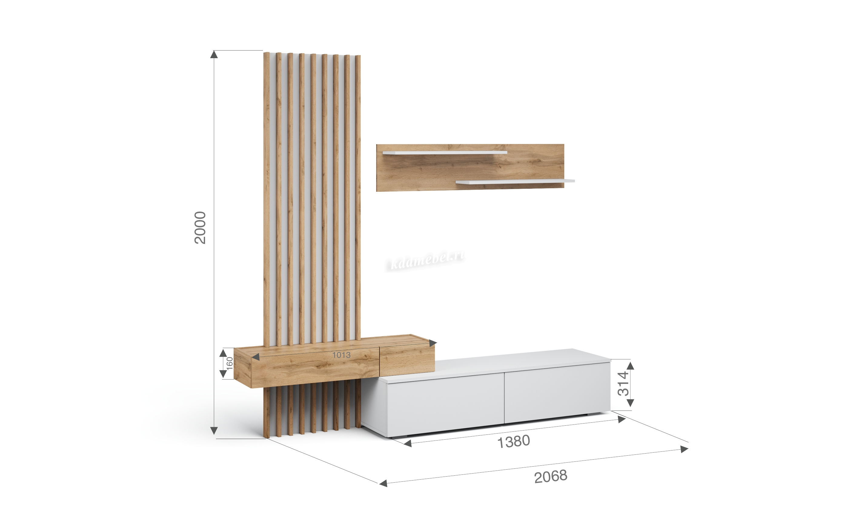 Интерьерная стенка Риана — это сочетание современного дизайна и природной теплоты для создания организованного пространства. Фактура натурального дерева, используемая в отделке, создает уютную атмосферу, которая наполняет дом комфортом и природной гармонией. Декоративная стеновая панель с вертикальными рейками МДФ – яркий акцентный элемент, добавляет структурированности и выразительности . Благодаря нейтральным цветам декора, стенка подойдет практически к любому интерьеру.