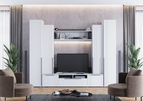 Описание Гостиная Вита вариант №1 (Белый лофт/Софт айс)