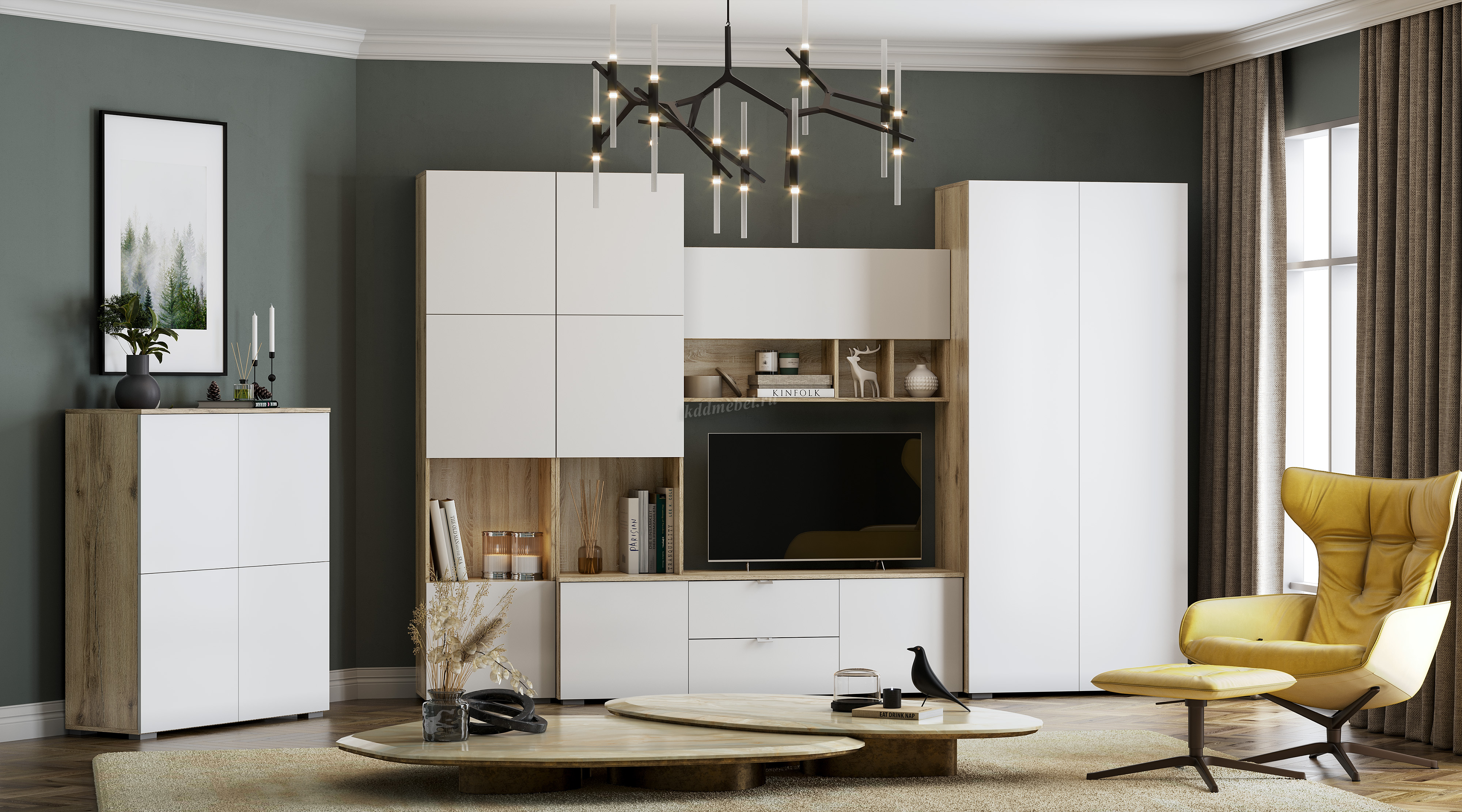 Секция ТВ Милан-1 (Делано светлый/Белый)