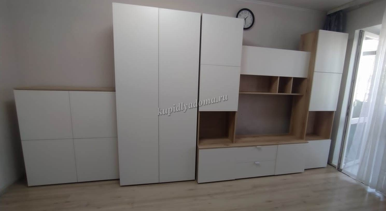 Ответ : Здравствуйте! Сборка центральной секции не универсальна, тумба с пеналом собирается только как на фото.