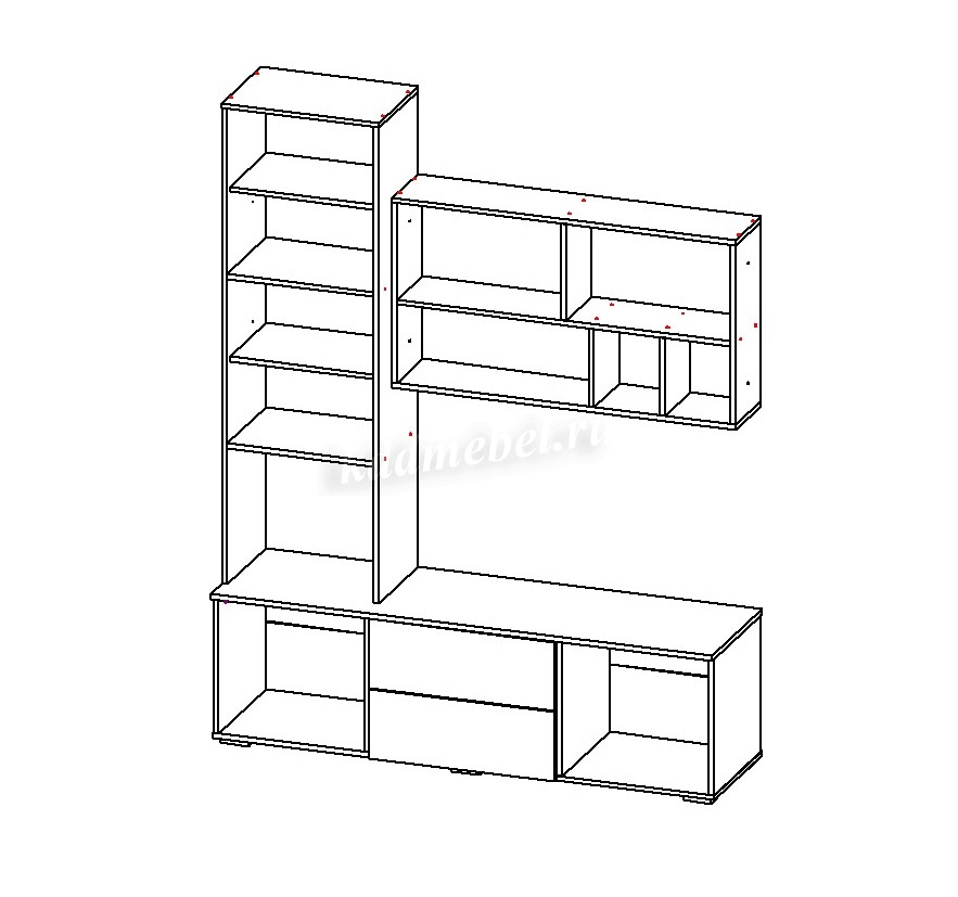 Ответ : Здравствуйте! Данная секция является частью модульной гостиной, полка крепится к шкафу, показанный на фотографиях
