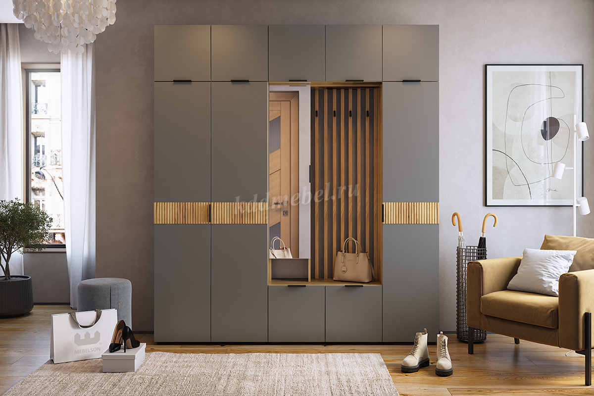Стильные, трендовые рейки МДФ, акцентные крючки, зеркало, в котором можно себя увидеть в полный рост, полки для мелочей и головных уборов,