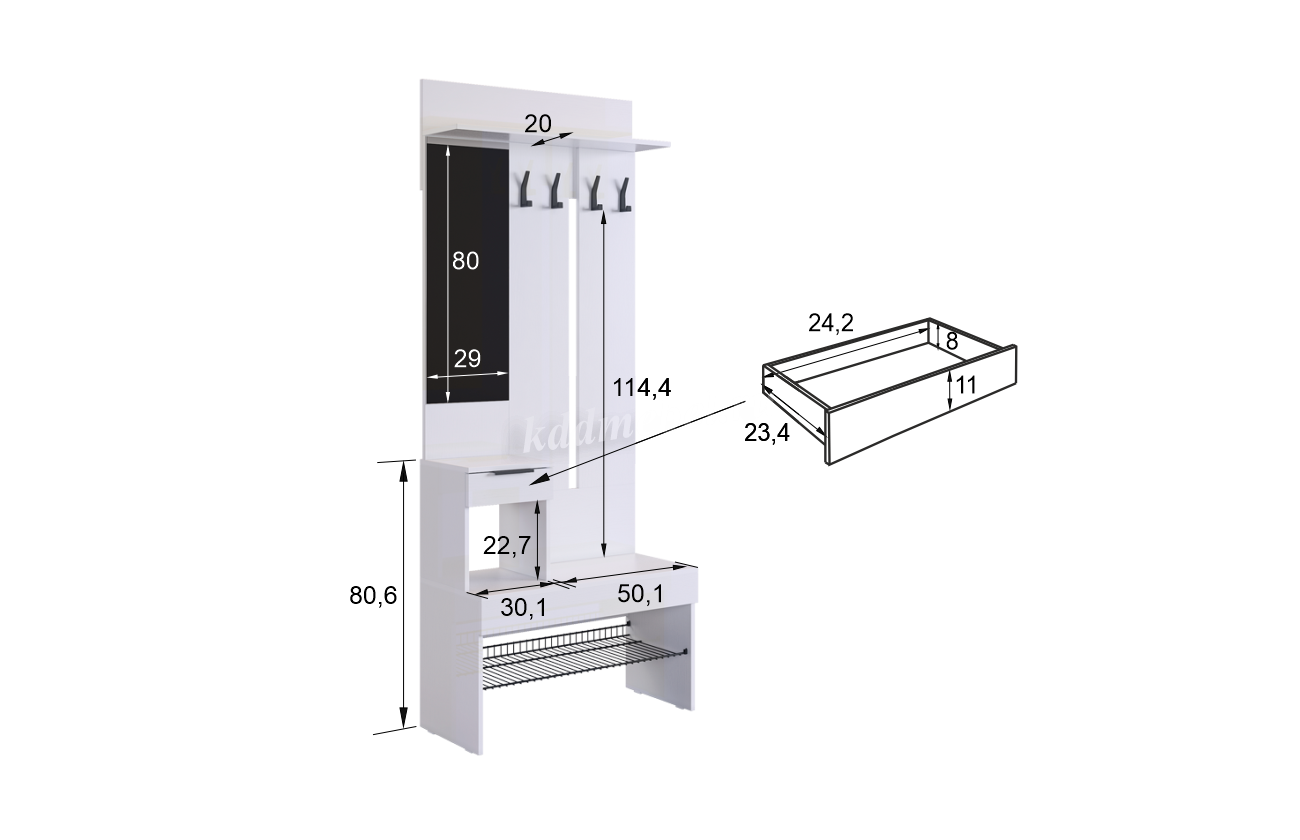 Описание Прихожая К5 Баско (Белое дерево)