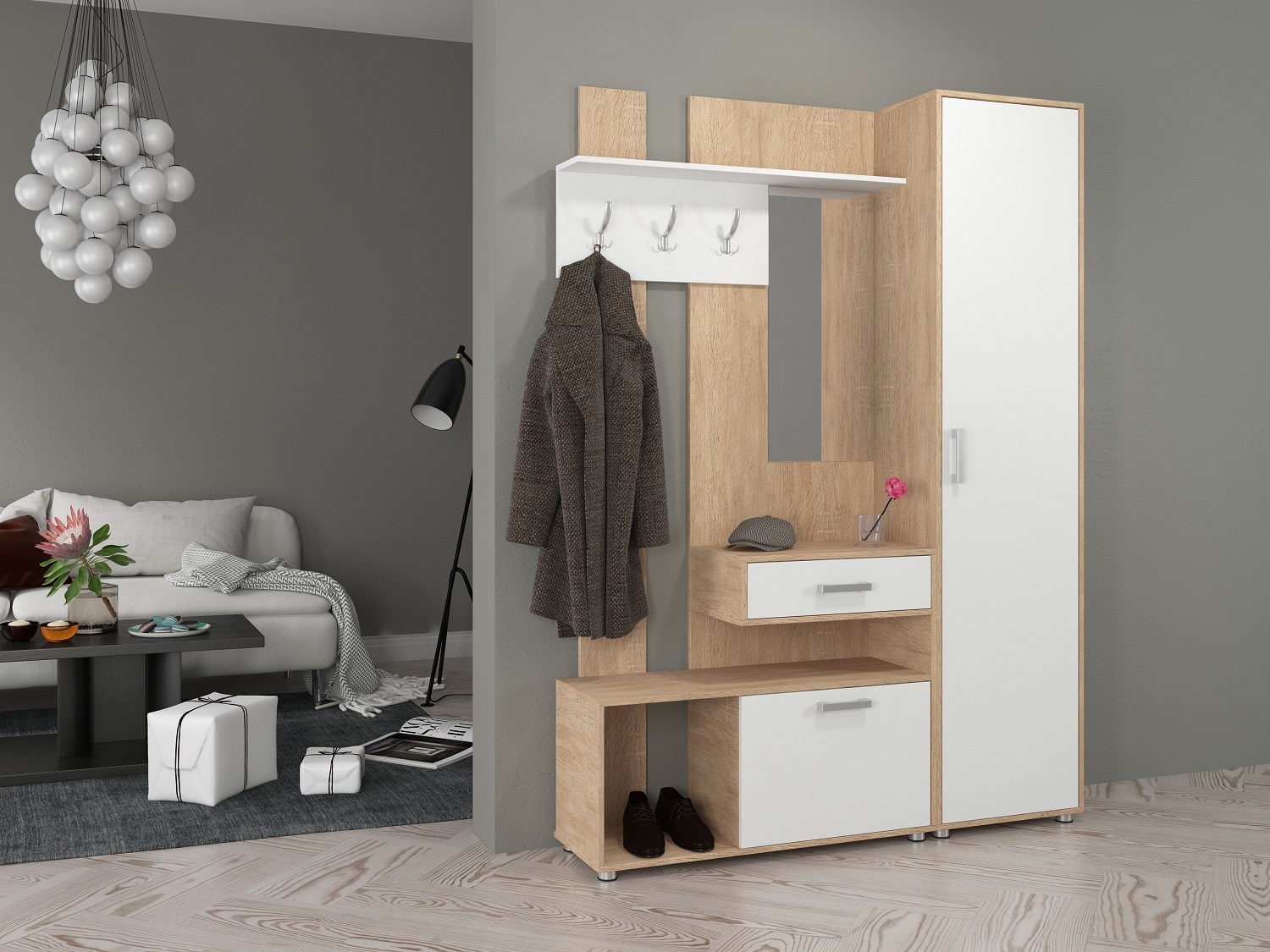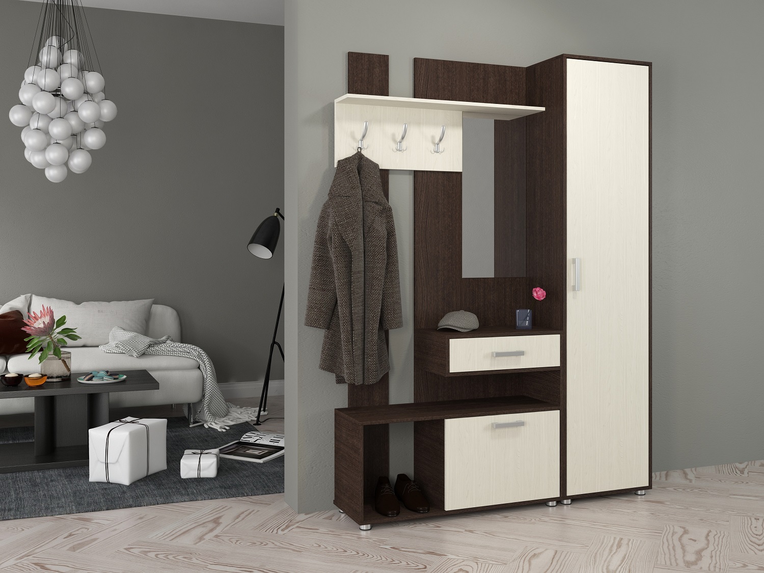 В дизайне современной коллекции мебели для прихожей "Энтер" используются лаконичные формы и древесные текстуры светлых и темных оттенков. Модульную прихожую "Энтер" вы можете приобрести как единым комплектом, так и отдельными модулями.
