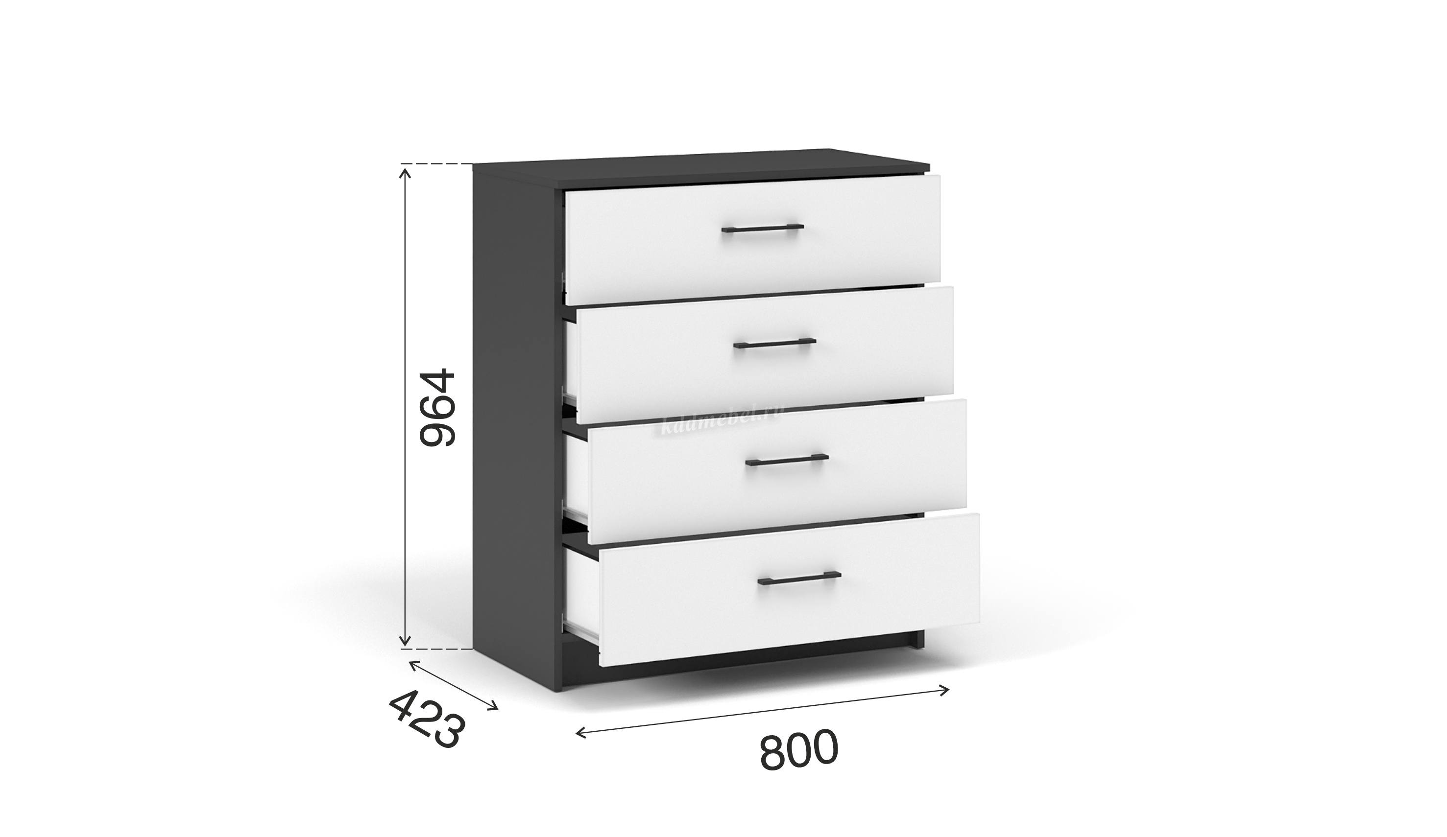 Описание Комод Чикаго 4 ящ (Антрацит/Белый)
