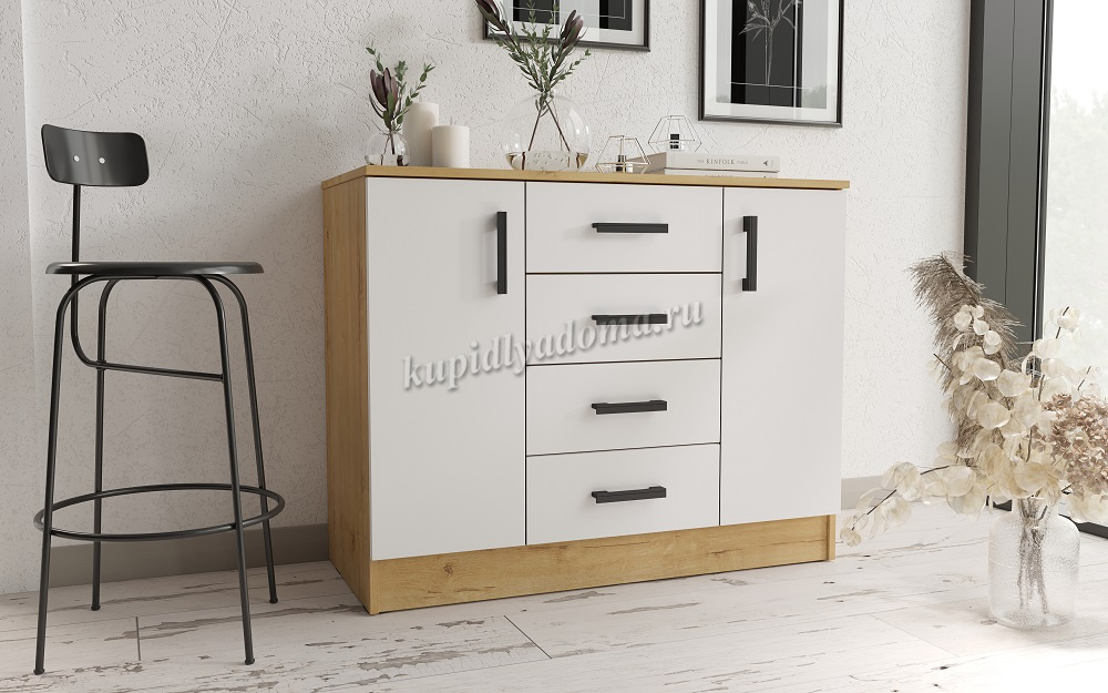 Комод К1000 2Д (Дуб Вотан/Белый) наличие товара: