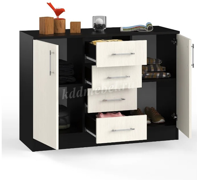 Комод «Стандарт 2» станет отличным решением для оформления помещений любого назначения. Комод оснащен четырьмя выдвижными ящиками, а также двумя боковыми секциями, внутри которых имеется полка. Большой, вместительный и функциональный комод шириной 800 мм способен найти место даже в самом тесном помещении, и при этом вместить в себя все необходимое.