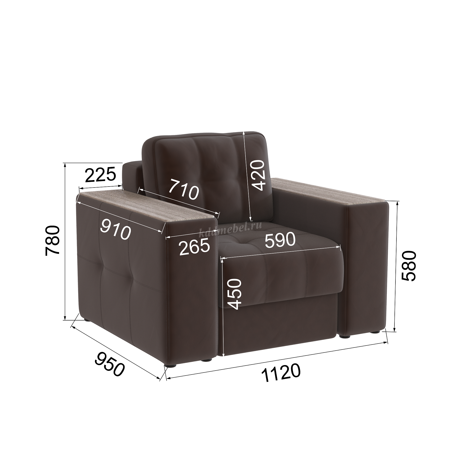 Подлокотники шириной 265 мм, обтянутые тканью и простеганные двойной отделочной декоративной строчкой.