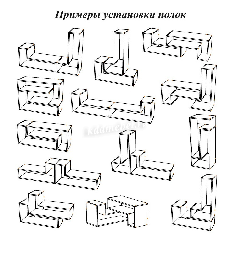 Универсальная секция "Смарт 2" представляет собой открытые ниши геометрической формы, которые можно сочетать между собой.