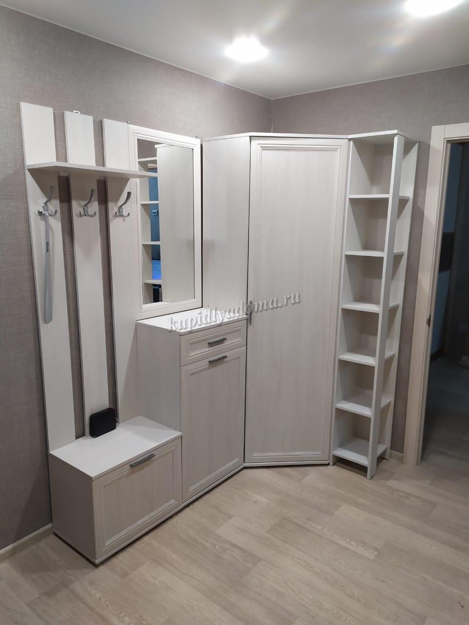 Угловой шкаф "Джаз"- это практичное решение для прихожей, так как, он занимает немного места и не выглядит громоздким, как классические линейные модели. Данная модель является довольно вместительной, в неё можно поместить верхнюю одежду, обувь, шапки, перчатки, шарфы. Отличный угловой шкаф, который прекрасно впишется винтерьер любой прихожей. Шкаф выполнен в современном стиле, отлично подойдет для небольшой прихожей или зоны у входа в квартире-студии. Угловая конфигурация модели позволяет создать полноценный гардероб на небольшой площади: шкаф займет нефункциональный угол, оставив свободным центр помещения и пространство у стен.