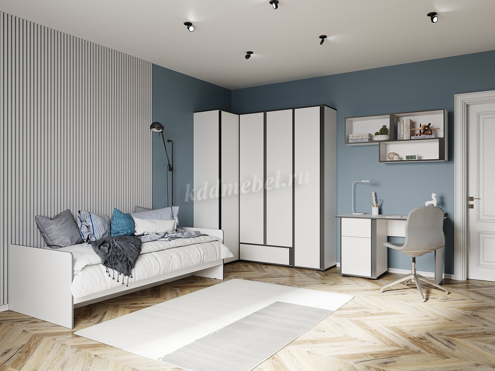 Шкаф угловой приставной Асцелла (Белый/Графит серый)