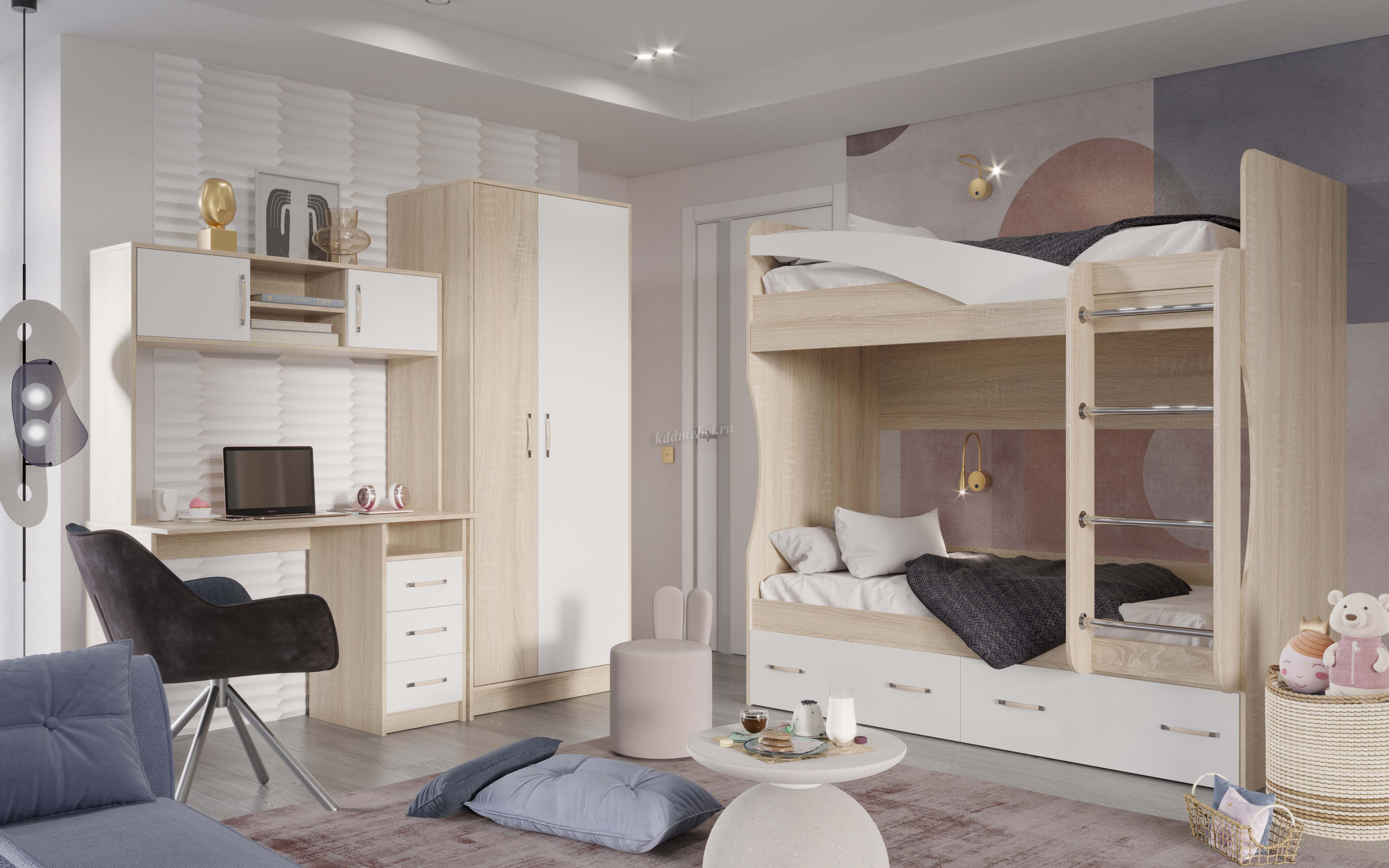 Описание Стол Буратино с ящиками (Дуб сонома/Белый)