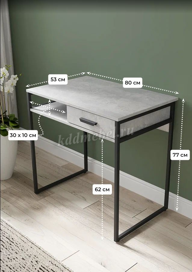 Описание Стол письменный Стелла (Цемент светлый/Черный)